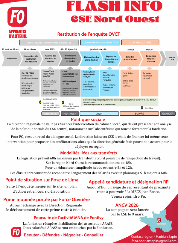 Flash FO du CSE Nord-Ouest – Février Posted By: Dan Laurent 25 février 2026 Flash info février 2026 Télécharger