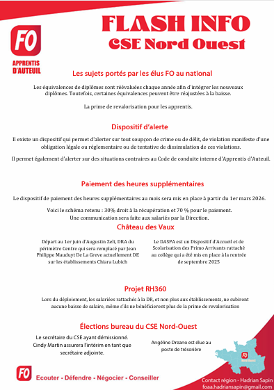 FLASH Info du CSE Nord-Ouest Posted By: Dan Laurent 18 février 2026 Flash info CSE NO Janvier Télécharger
